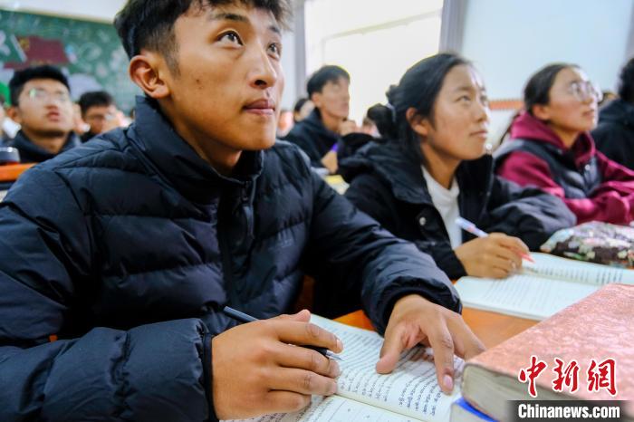 10月12日,西藏藏醫(yī)藥大學(xué)一課堂內(nèi),學(xué)生們在學(xué)習(xí)藏醫(yī)藥典籍《四部醫(yī)典》內(nèi)容。中新社記者 江飛波 攝