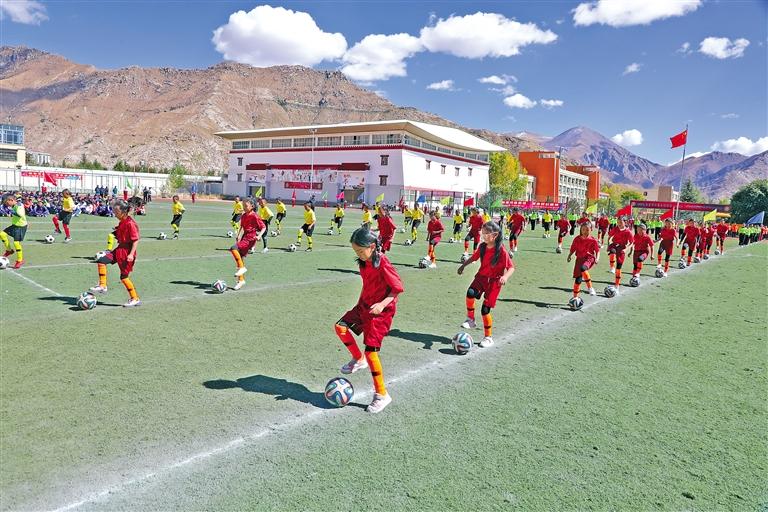 近日,2023年拉薩市校園足球聯賽在拉薩市江蘇中學開幕,來自全市初高中學段的26支男、女子隊伍參賽。
