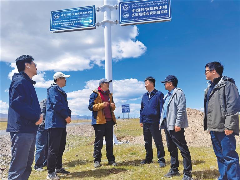 圖為科技部科學(xué)普及司工作人員和援藏專家一行,在當(dāng)雄縣調(diào)研中國(guó)科學(xué)院納木錯(cuò)多圈層綜合觀測(cè)研究站、國(guó)家電網(wǎng)公司西藏羊八井高海拔試驗(yàn)基地。記者 李洲 攝