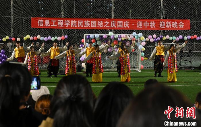 圖為2023年9月,藏族學生在迎新晚會上表演節(jié)目。趙朗 攝