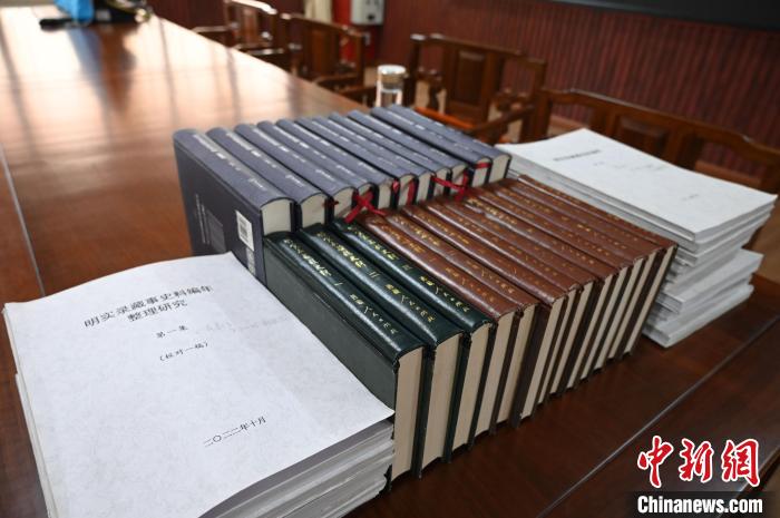 圖為西藏民族大學(xué)館藏的明清實(shí)錄藏族史料研究成果。趙朗 攝