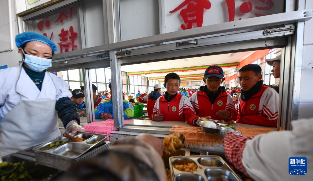 當雄縣中學的學生在學校食堂打午飯(11月10日攝)。新華社記者 晉美多吉 攝
