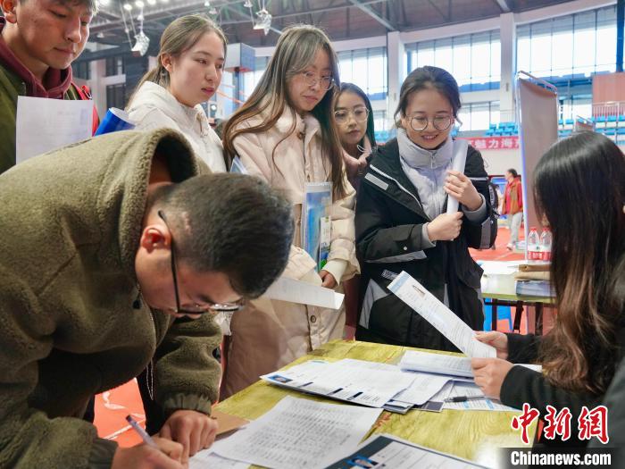圖為招聘人員為大四畢業(yè)生介紹相關崗位信息。劉洋 攝