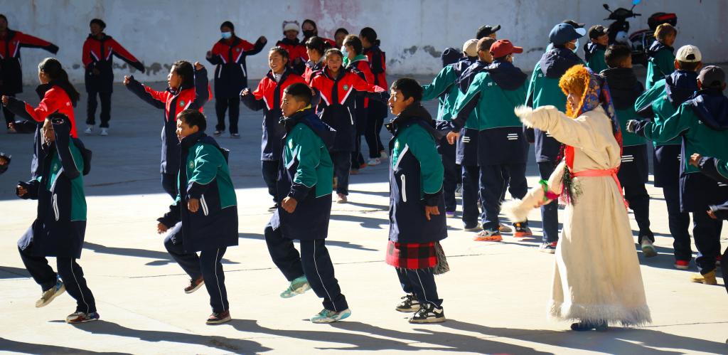 西藏阿里措勤縣中學(xué)的學(xué)生們正在跳“磁石彈舞”(11月13日攝)新華社記者 聶毅 攝