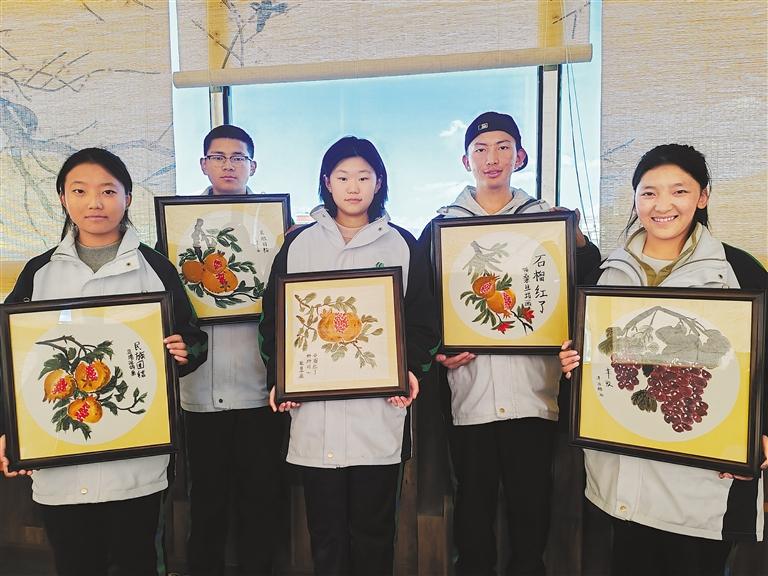 學(xué)員尼瑪次仁和格桑旦增通過(guò)寫意花鳥的創(chuàng)作,感受到了中國(guó)畫的魅力。他們的作品《石榴紅了,籽籽同心》在北實(shí)宏志班赴京游學(xué)中作為禮物,贈(zèng)送給北京友好學(xué)校。
