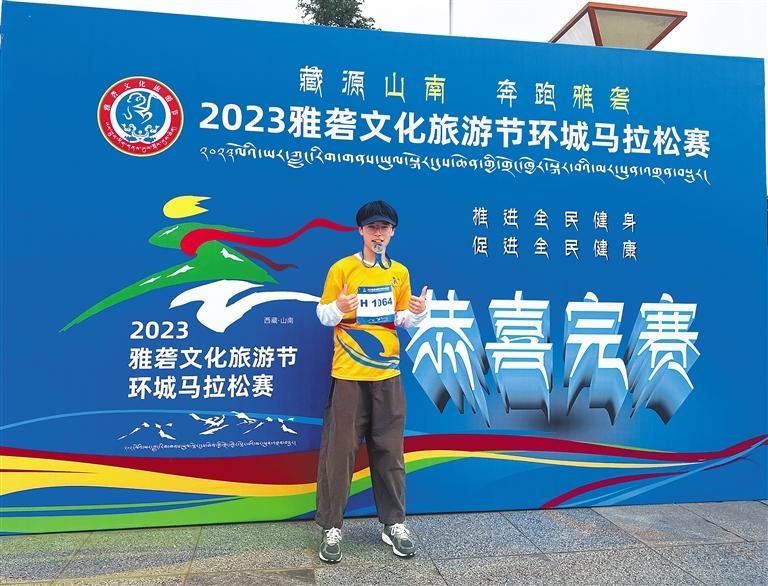 圖為蘇子洋在2023雅礱文化旅游節(jié)環(huán)城馬拉松賽活動中,以志愿者的身份為參賽選手服務(wù)。記者 武沛濤 攝