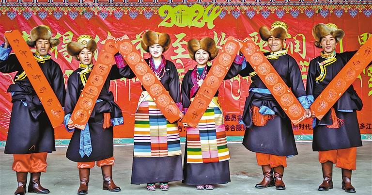 日前,西藏山南市曲松縣邱多江鄉(xiāng)組織300多名干部群眾在瑪如村舉辦了以“喜得佳節(jié)至 牧歌潤(rùn)川野”為主題的“村晚”文藝匯演活動(dòng)。當(dāng)?shù)啬撩瘛⒎掂l(xiāng)大學(xué)生用17個(gè)精彩的舞蹈、歌曲、朗誦等節(jié)目,謳歌新時(shí)代新生活,展現(xiàn)基層群眾積極樂(lè)觀、昂揚(yáng)向上的精神風(fēng)貌。