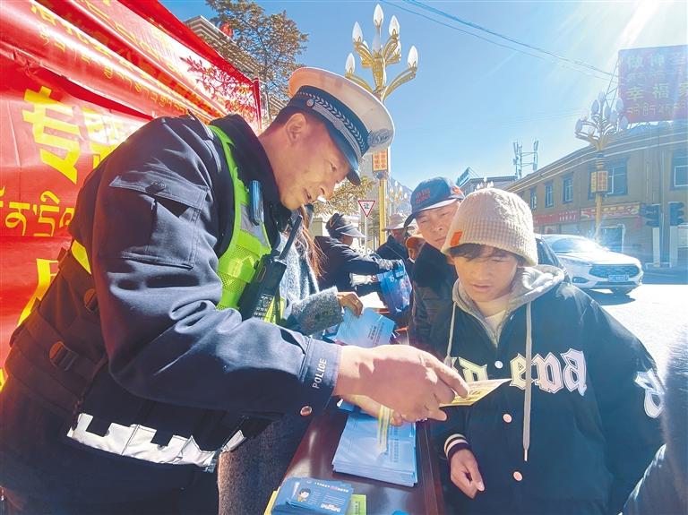 圖為工作人員向過往群眾發(fā)放宣傳手冊并講解網(wǎng)絡(luò)安全知識。記者 丹增平措 攝
