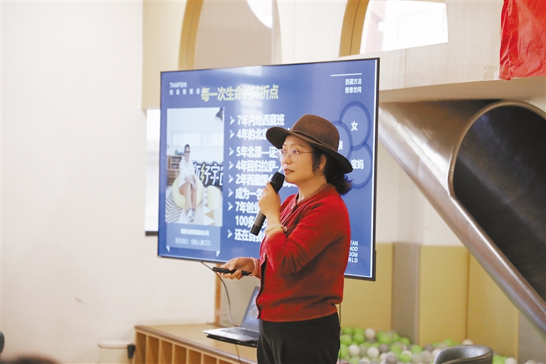 圖為卓瑪向大學生和農牧民創(chuàng)業(yè)者分享創(chuàng)業(yè)經驗。