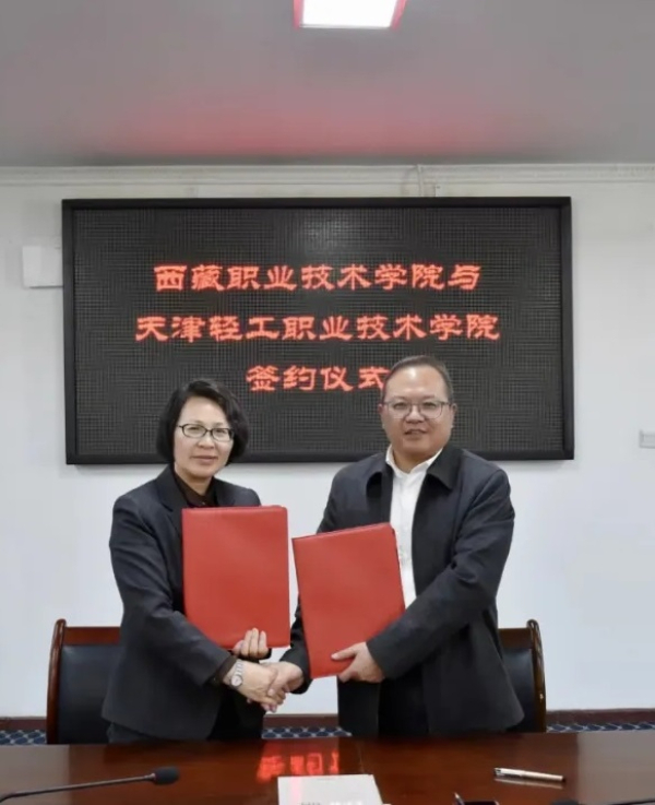 職業(yè)教育活動周期間,天津輕工職業(yè)技術(shù)學(xué)院黨委副書記、院長李云梅一行應(yīng)邀赴西藏職業(yè)技術(shù)學(xué)院考察交流,指導(dǎo)該院“新雙高”申報以及國家級職業(yè)教育教師創(chuàng)新團(tuán)隊建設(shè),并代表學(xué)校與西藏職業(yè)技術(shù)學(xué)院簽署合作協(xié)議。西藏職業(yè)技術(shù)學(xué)院黨委副書記、院長陳飛,黨委委員、副院長徐斌等出席了簽約儀式。