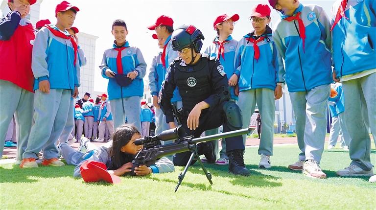 圖為巴宜區(qū)中學(xué)學(xué)生在特警隊(duì)員指導(dǎo)下沉浸式體驗(yàn)警用裝備。惠盼宏 記者 彭琦 攝