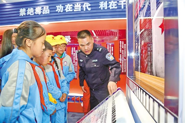 在禁毒基地的展覽廳內(nèi),學(xué)生們圍聚在公安民警身旁,認(rèn)真聆聽每一句講解。民警結(jié)合展廳內(nèi)的圖片、實(shí)物、案例,深入淺出地向?qū)W生們介紹了毒品的種類、危害以及防范禁毒的方法,用生動(dòng)的語言為學(xué)生們上了禁毒教育的生動(dòng)一課,讓學(xué)生們在輕松愉快的氛圍中掌握了更多防范毒品的方法和技巧,提高了廣大青少年對新型毒品的認(rèn)識和了解,為構(gòu)建平安校園、無毒校園奠定了堅(jiān)實(shí)基礎(chǔ)。