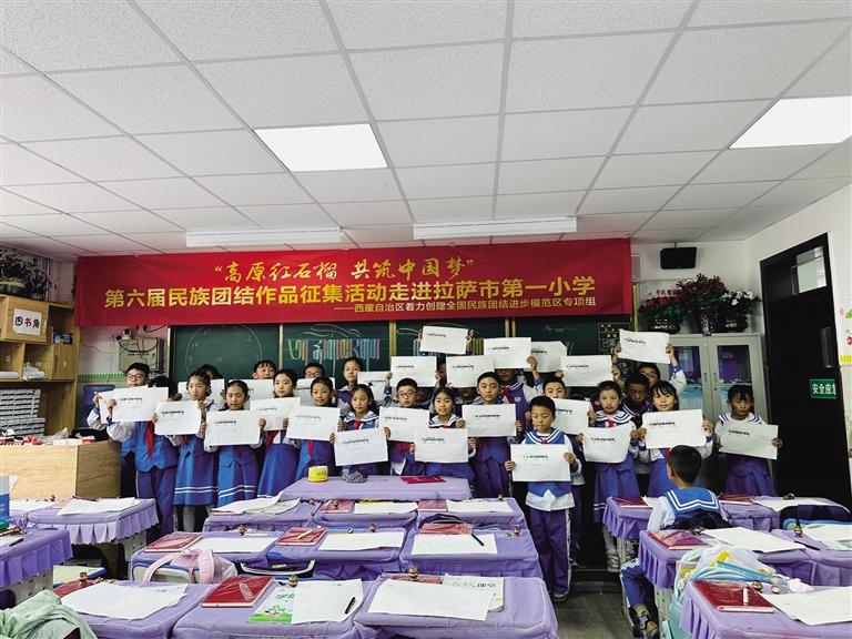 為進(jìn)一步豐富第六屆民族團(tuán)結(jié)書(shū)法、美術(shù)、攝影、微視頻作品征集活動(dòng)的內(nèi)容和形式,弘揚(yáng)傳統(tǒng)文化,激發(fā)學(xué)生對(duì)書(shū)法藝術(shù)的熱愛(ài)之情,7月5日下午,由西藏自治區(qū)著力創(chuàng)建全國(guó)民族團(tuán)結(jié)進(jìn)步模范區(qū)專(zhuān)項(xiàng)組主辦,西藏自治區(qū)黨委宣傳部、西藏自治區(qū)民族事務(wù)委員會(huì)協(xié)辦,西藏傳媒集團(tuán)有限公司承辦的第六屆民族團(tuán)結(jié)書(shū)法、美術(shù)、攝影、微視頻作品征集活動(dòng)走進(jìn)拉薩市第一小學(xué),為同學(xué)們帶來(lái)了一堂生動(dòng)的藏文書(shū)法課。