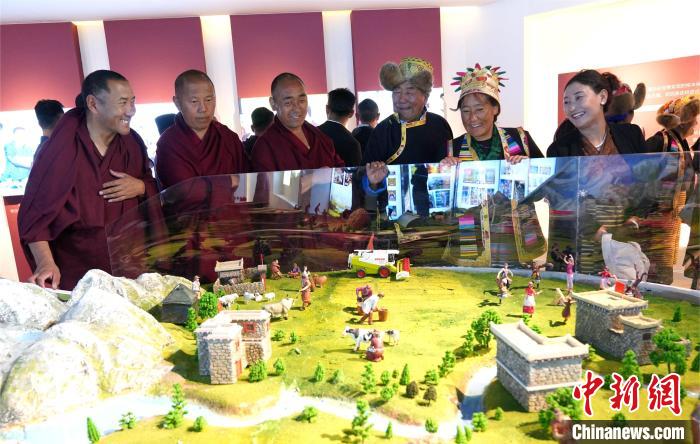 圖為瓊結(jié)縣僧尼及農(nóng)牧區(qū)民眾代表參觀主題教育館。曲杰 攝