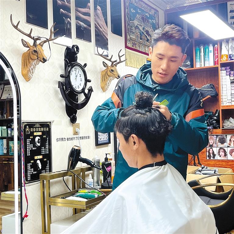 “這些年,隨著家鄉(xiāng)越來越繁榮,群眾生活水平不斷提高,大家也更加注重形象,對‘美’有了更高的追求?!苯?jīng)過自己的觀察思考和對家鄉(xiāng)的深入了解,巴桑加措覺得家鄉(xiāng)的理發(fā)行業(yè)還是一片“藍?!保熬胺浅:谩?/p>