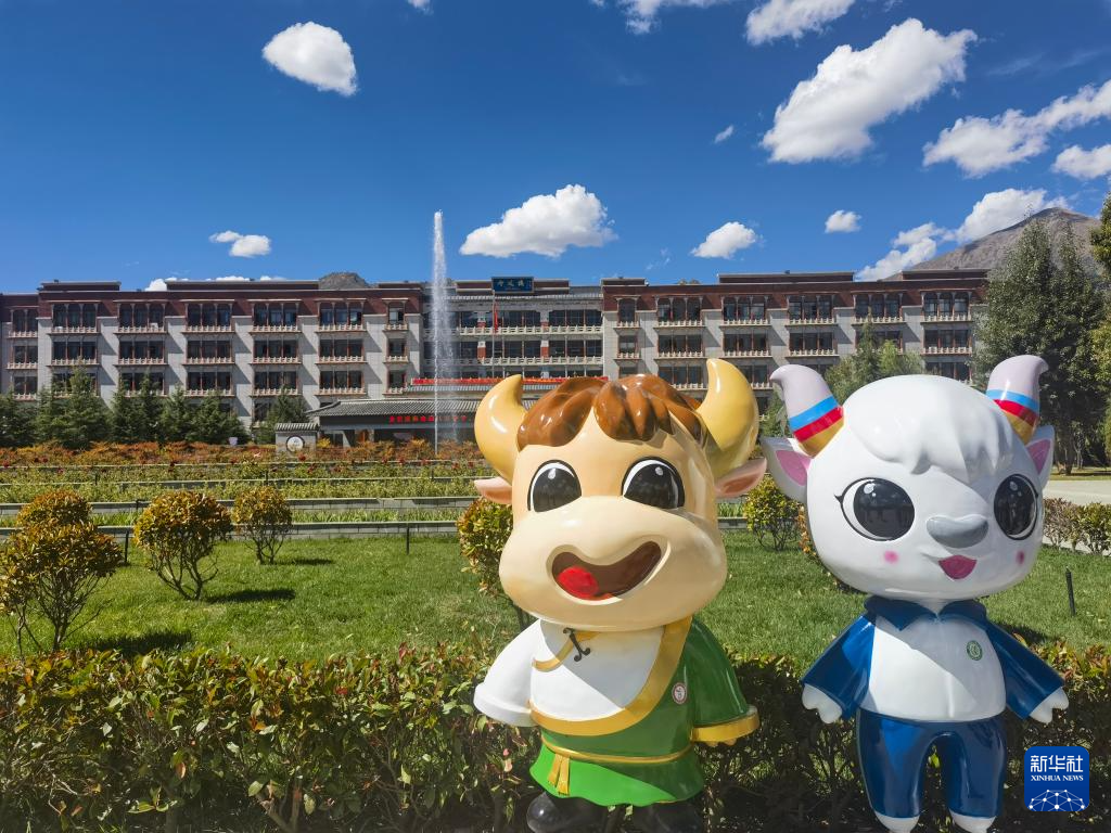 圖為拉薩北京實驗中學學生自己設計的校園吉祥物“牛小特”和“小京羚”。 新華社記者舒靜 攝