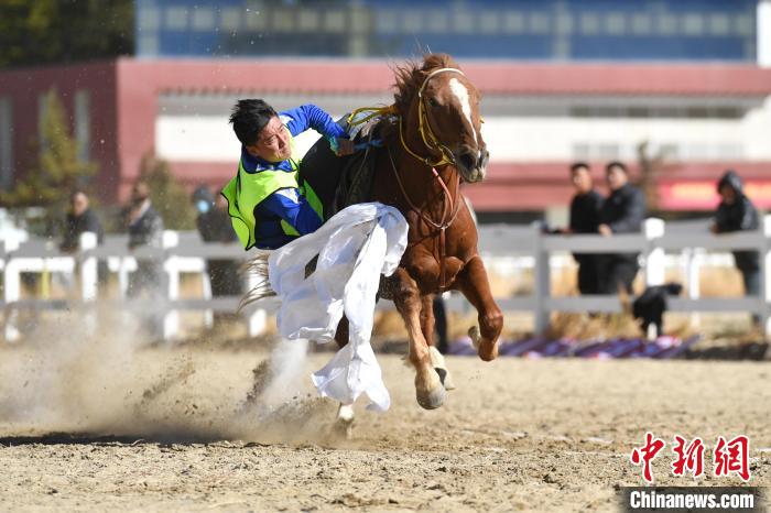 圖為西藏青少年民族傳統(tǒng)馬術(shù)比賽現(xiàn)場。中新社記者 貢嘎來松 攝