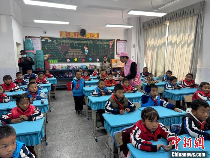 圖為工作人員給學(xué)生們講解鐵路安全知識(shí)現(xiàn)場(chǎng)。馬生明 攝