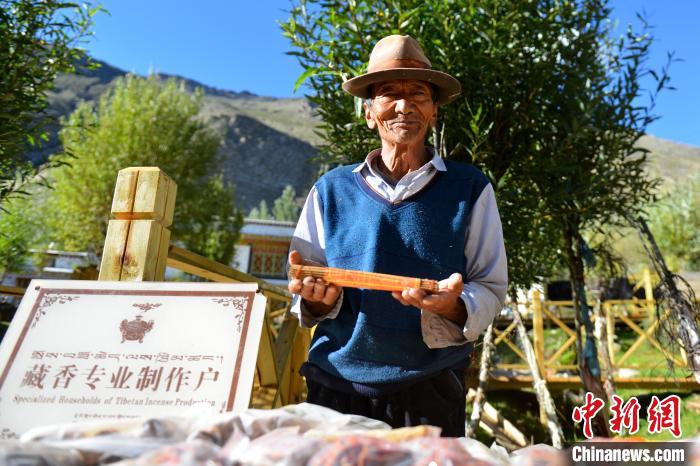 圖為西藏尼木縣吞巴景區(qū)內(nèi),一位農(nóng)牧民銷售自家制作的藏香。(資料圖) 江飛波 攝