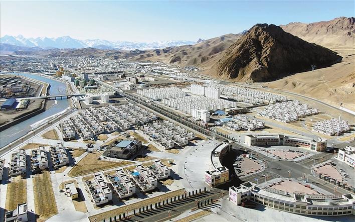 圖為阿里地區(qū)獅泉河鎮(zhèn)康樂(lè)新居易地扶貧搬遷安置點(diǎn)全景。記者 洛桑旦增 攝