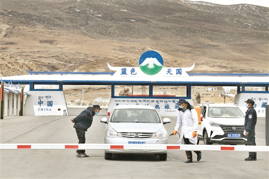 為當(dāng)雄縣羊八井藍(lán)色天國對(duì)進(jìn)出車輛進(jìn)行消毒安檢。(本組圖片由拉薩融媒視覺組攝)