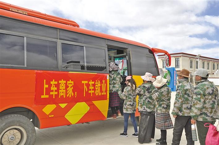 圖為近日桑珠孜區(qū)江當(dāng)鄉(xiāng)郭加新村52名農(nóng)牧民群眾,搭乘當(dāng)?shù)卣赓M提供的大巴車,有序前往白朗縣蔬菜產(chǎn)業(yè)園務(wù)工。記者 汪純 攝