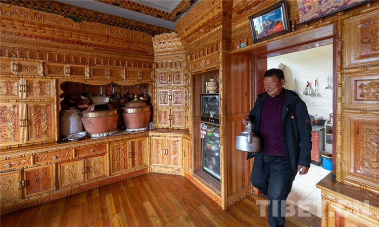 來到村民仁青家里,仁青正在煤氣灶上燒水。“平時自己在工地上開裝載機,現(xiàn)在家庭年收入10多萬元。”談起現(xiàn)在的生活仁青開興地說,以前只有過年才可能吃到的大米,現(xiàn)在已經(jīng)是每家每戶的家庭便飯。