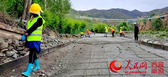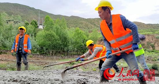 正在緊張施工的拉玉鄉(xiāng)甭唐公路鋪路現(xiàn)場 柴濟(jì)東攝