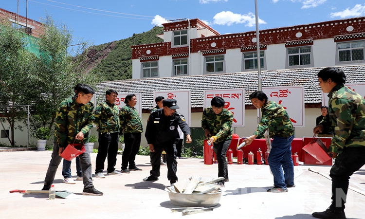 中國西藏網(wǎng)訊 “拔下保險(xiǎn)銷,讓噴嘴對準(zhǔn)火焰根部……”46歲的尼瑪一邊講解一邊演示滅火器使用方法和注意事項(xiàng),身邊幾位穿著迷彩服的學(xué)員正認(rèn)真觀察并模仿著。