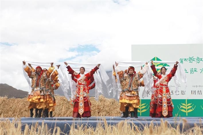 春種一粒粟,秋收萬顆子,今年又是一個豐收年!在這金秋颯爽、碩果累累的季節(jié)里,9月22日上午,拉薩市第三屆中國農(nóng)民豐收節(jié)在堆龍德慶區(qū)隆重舉行。本次豐收節(jié)慶?;顒游舜笈r(nóng)牧民朋友匯聚于此,使得活動開幕式現(xiàn)場熱鬧非凡,在一片豐收的青稞田里,人們載歌載舞,分享豐收的喜悅。文/圖 記者 趙夢茹