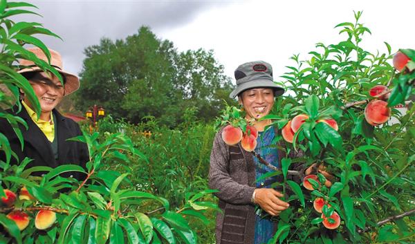 西藏林芝市波密縣東若村聯(lián)戶群眾生態(tài)采摘園里忙增收