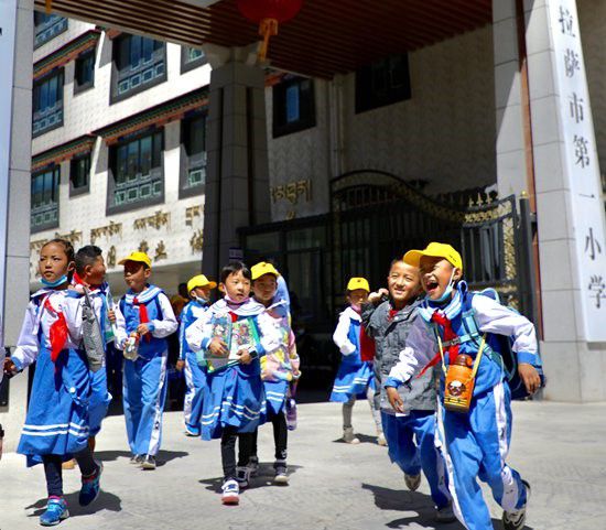 拉薩市第一小學的學生們放學后歡快地走出校門。次仁羅布 攝