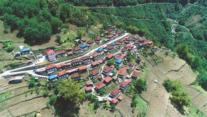 從公路上遠(yuǎn)眺西藏自治區(qū)阿里地區(qū)日土縣日松鄉(xiāng)甲崗村,只見一大片紅檐白墻的兩層居民房矗立在綠中帶黃的草原上,家家戶戶屋頂都插著五星紅旗,迎風(fēng)招展、格外鮮艷。