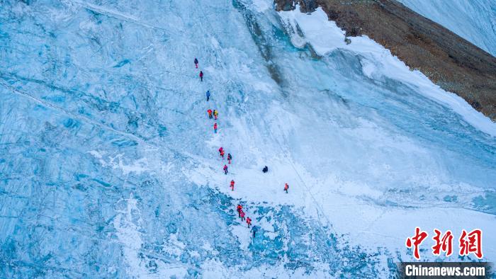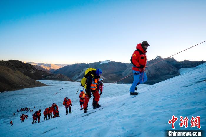 圖為第三極攀登者2020中國企業(yè)家冰川挑戰(zhàn)賽參賽者攀登洛堆峰。 當雄縣委宣傳部供圖