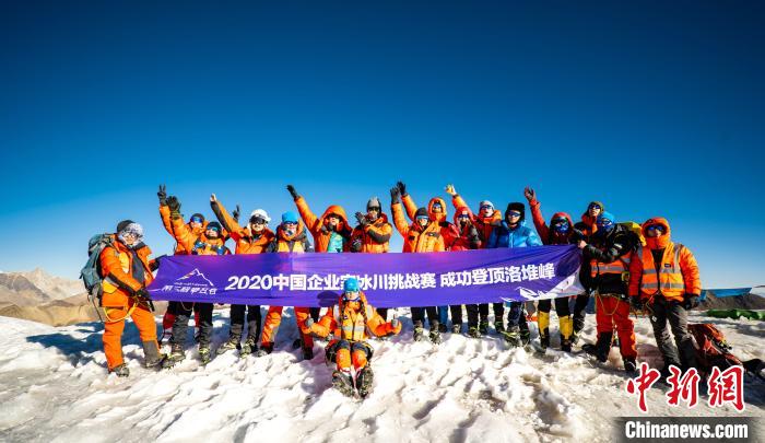 圖為第三極攀登者2020中國企業(yè)家冰川挑戰(zhàn)賽參賽者成功登頂洛堆峰?!‘斝劭h委宣傳部供圖