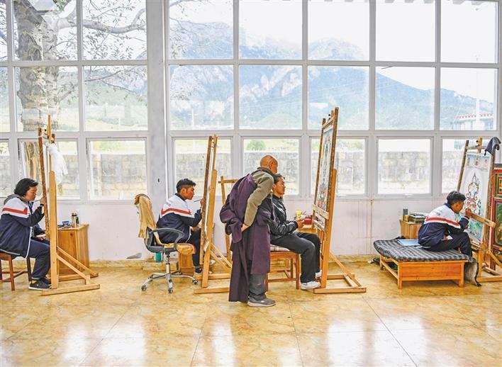 近年來(lái),西藏大力發(fā)展現(xiàn)代職業(yè)教育,為打贏脫貧攻堅(jiān)戰(zhàn)提供了技能保障。作為非物質(zhì)文化遺產(chǎn)傳承人,88歲的嘎瑪?shù)吕赵谖鞑夭际锌ㄈ魠^(qū)嘎瑪鄉(xiāng)成立了民族手工藝培訓(xùn)基地,使民族手工藝從家族作坊式的生產(chǎn)向集中生產(chǎn)轉(zhuǎn)變。精湛的手工藝品逐漸走出了山溝,也帶動(dòng)群眾走上了致富路。目前,嘎瑪?shù)吕展灿袑W(xué)員460名,其中112名曾是建檔立卡貧困戶,去年人均年收入達(dá)到20萬(wàn)元左右。
