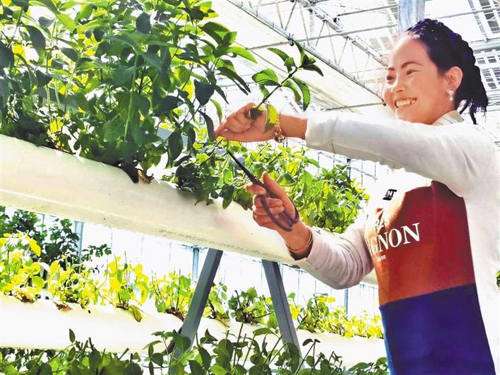 圖為來(lái)自洛江鎮(zhèn)洛江村的園區(qū)員工片多在農(nóng)產(chǎn)品區(qū)打理農(nóng)作物。記者 王莉 攝