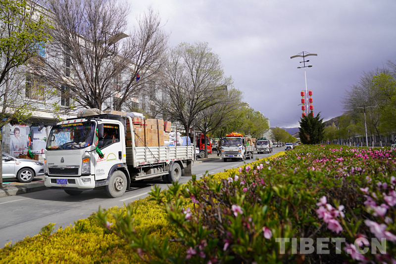 圖為農(nóng)民運(yùn)輸連隊(duì)在山南市區(qū)運(yùn)貨中