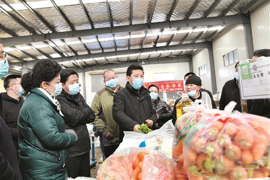 1月6日上午,市委副書記、市長果果前往城關(guān)區(qū)智昭產(chǎn)業(yè)園調(diào)研。圖為果果在城關(guān)區(qū)智昭產(chǎn)業(yè)園區(qū)農(nóng)貿(mào)批發(fā)市場了解市場物資保供及凍儲物資儲備情況。[詳細(xì)] -