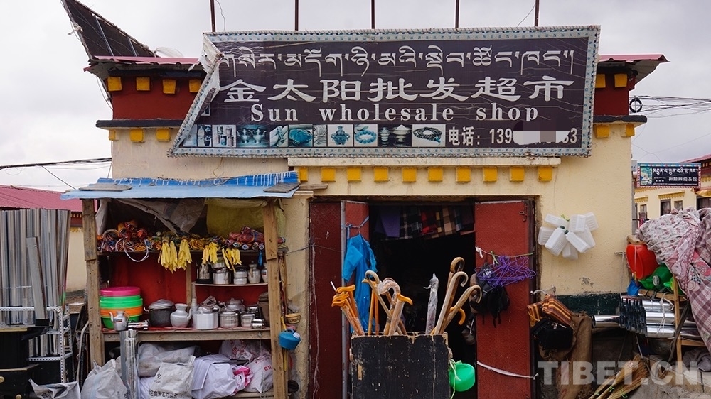 圖為巴嘎鄉(xiāng)街面上的店面招牌 攝影: 王媛媛