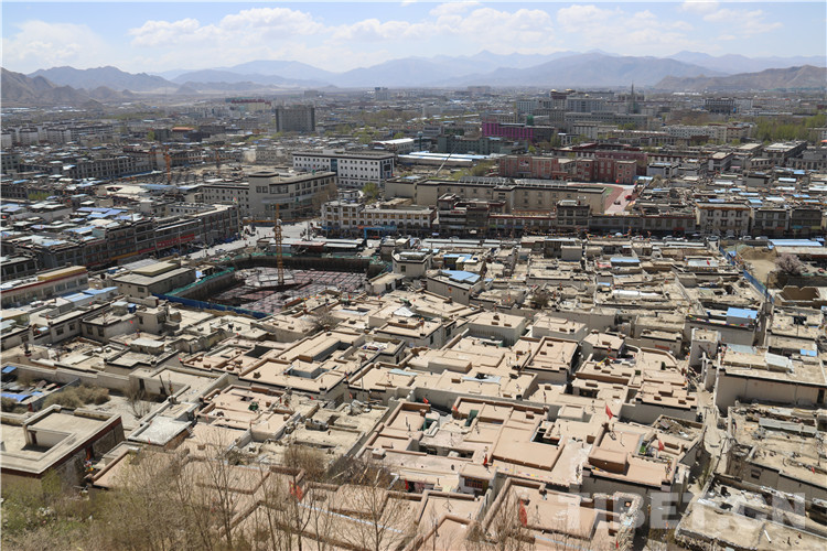 圖為從桑珠孜城堡俯瞰日喀則市區(qū)景象