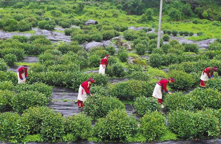 采茶中的門巴族姑娘。