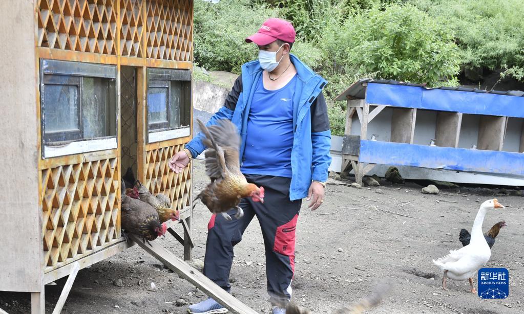 9月15日,西藏定結(jié)縣陳塘鎮(zhèn)養(yǎng)雞場負(fù)責(zé)人拉巴塔杰在放養(yǎng)藏雞。新華社發(fā)(索朗羅布 攝)