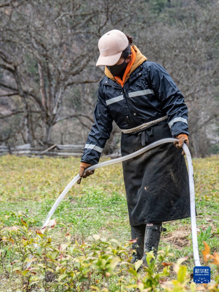 在西藏林芝市波密縣藏芝星農(nóng)業(yè)科技有限公司茶園里,茶田管護員正忙著給茶樹澆水除草,門口的項目牌上展示著茶樹品種、生長周期和管護注意事項?!安鑸@讓我們增加了新的收入。”看著現(xiàn)代化的連片茶田,在此工作的古鄉(xiāng)雪瓦卡村32歲的村民索朗措姆由衷感慨。