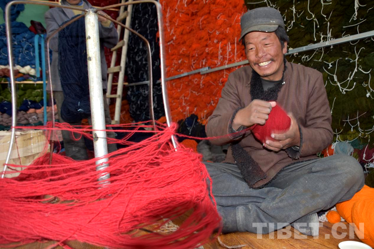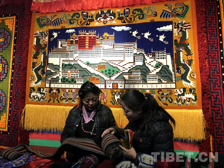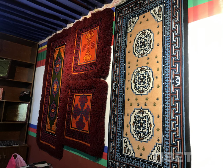 “剛到合作社每天工資160元,一個月下來就有小四千,一年收入妥妥的超3萬元。”說話間,巴頓也沒有歇下手中的活計。穿桿結(jié)扣,勤勞的雙手一直忙碌著,在合作社6年多,他已經(jīng)比較熟練地掌握了卡墊織法、色彩以及紋樣。如今,卡墊接活都是以承包方式,往往供不應(yīng)求,一家人住在裝修一新的藏式小院里,妻子現(xiàn)在也在參加合作社新員工培訓(xùn),四個孩子都進了公立學(xué)校讀書,享受了義務(wù)教育免費“三包”政策。