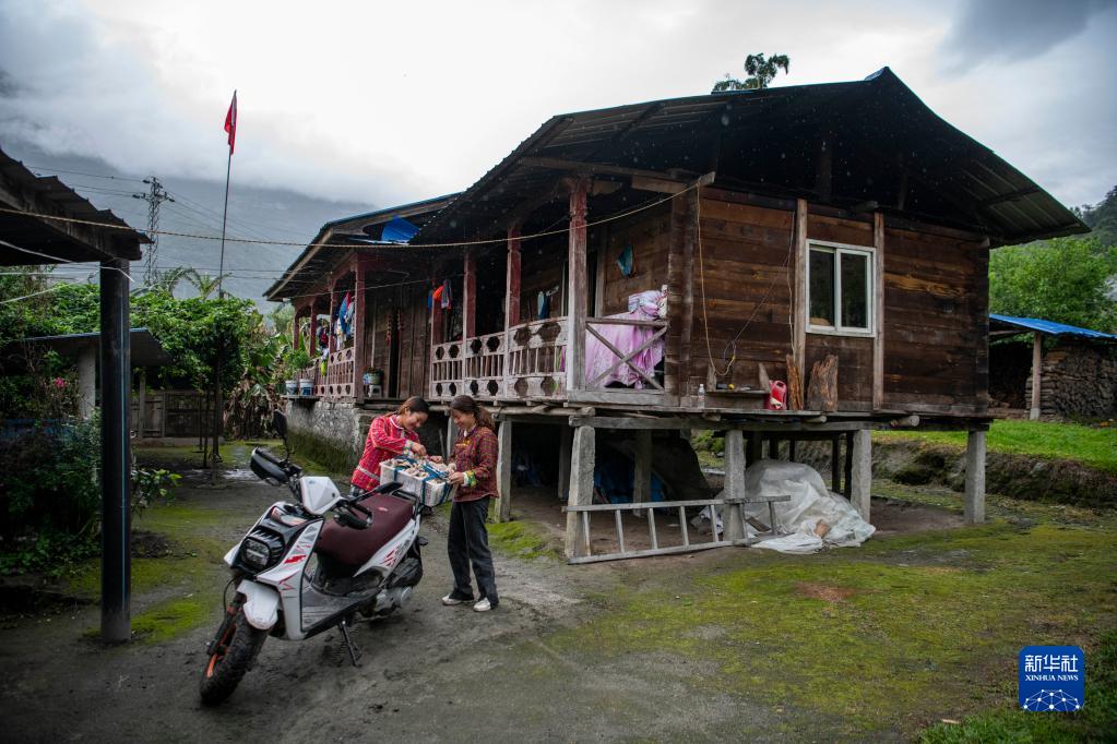 明珠措姆準(zhǔn)備騎摩托車(chē)前往市場(chǎng),銷(xiāo)售剛采摘的平菇(4月14日攝)。