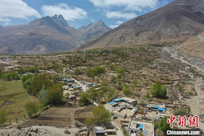 圖為4月12日,色麥村柳樹(shù)吐綠,春意濃濃。(無(wú)人機(jī)照片)。 中新社記者 貢嘎來(lái)松 攝