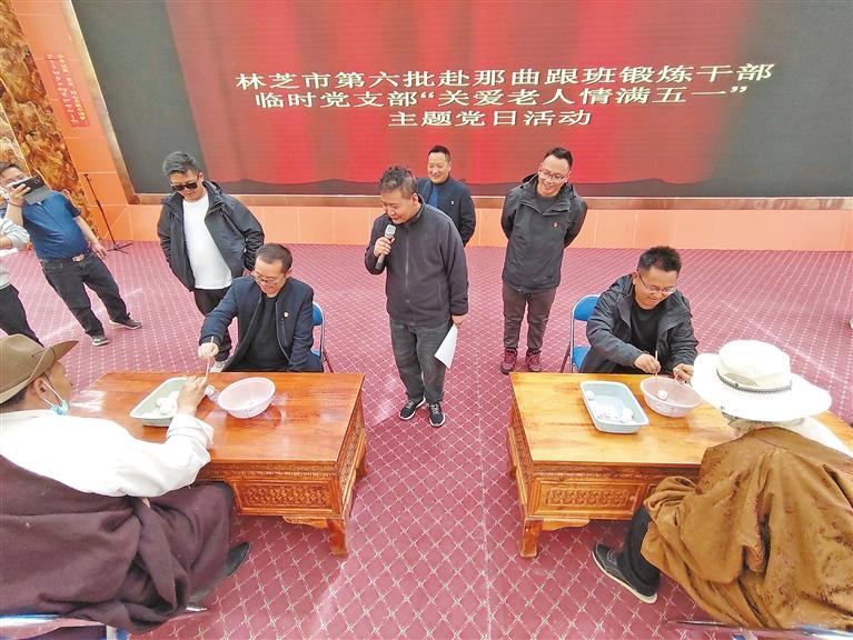 近日,林芝赴那曲跟班鍛煉小組臨時黨支部組織黨員干部前往色尼區(qū)特困人員集中供養(yǎng)中心開展關(guān)愛老人主題黨日活動?;顒又?,黨員干部為老人們發(fā)放慰問品、表演文藝節(jié)目,同老人們拉家常,幫老人們打掃衛(wèi)生。此次活動既是一次志愿活動,也是一次黨性鍛煉,充分展現(xiàn)了黨員干部踐行為民服務(wù)、奮發(fā)有為的時代風(fēng)采,增進(jìn)了干群關(guān)系。