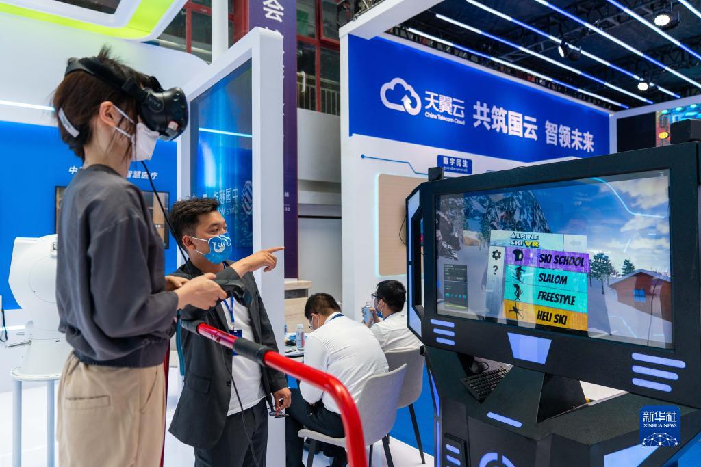 參觀者在會場體驗VR游戲。新華社記者周荻瀟 攝