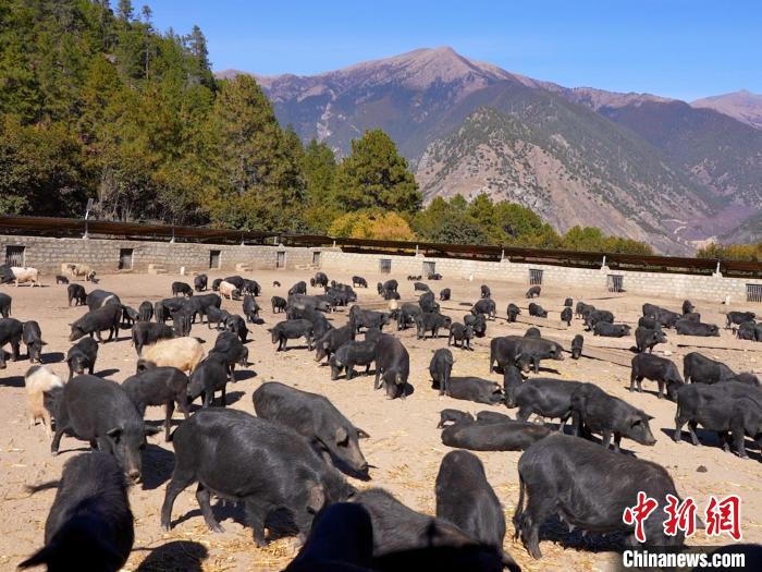 圖為養(yǎng)殖基地里的藏香豬?!∴嚭F?攝